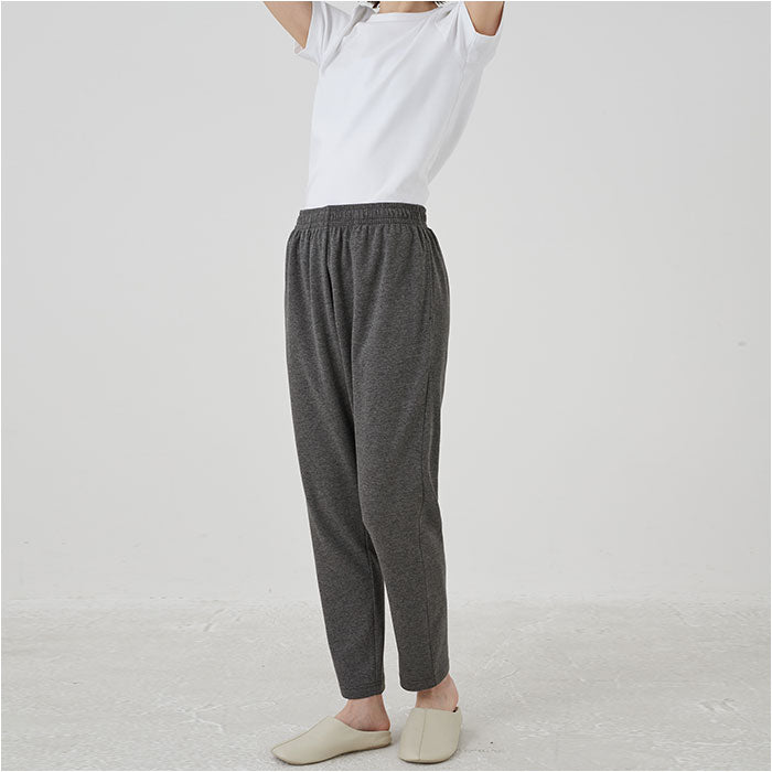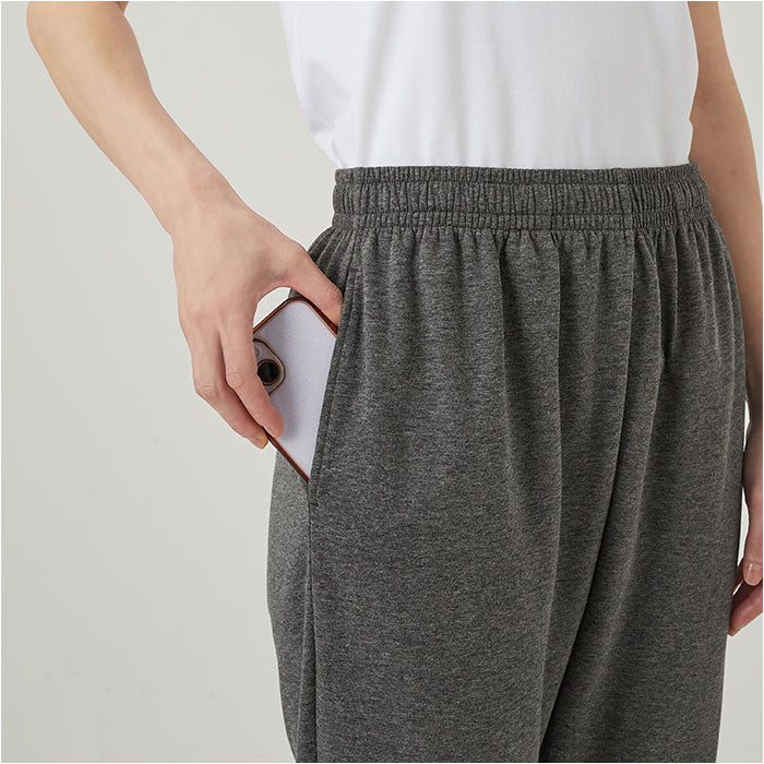 ・ウエストゴム仕様で調節自在、軽やかに履けるパンツ。左右にポケット付き。