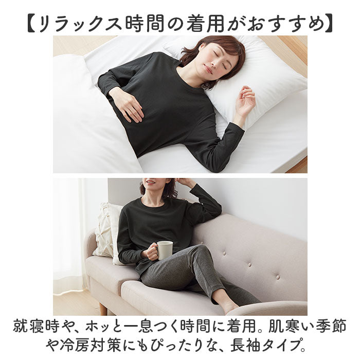 ・就寝時や、ホッと一息つく時間に着用。肌寒い季節や冷房対策にもぴったりな、長袖タイプ。