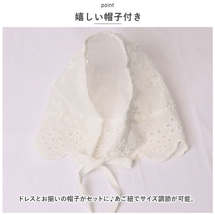 ・ドレスとお揃いの帽子がセットに♪あご紐でサイズ調節が可能。