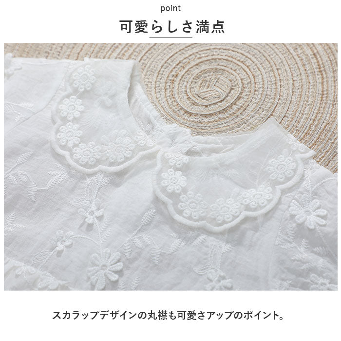 ・スカラップデザインの丸襟も可愛さアップのポイント。