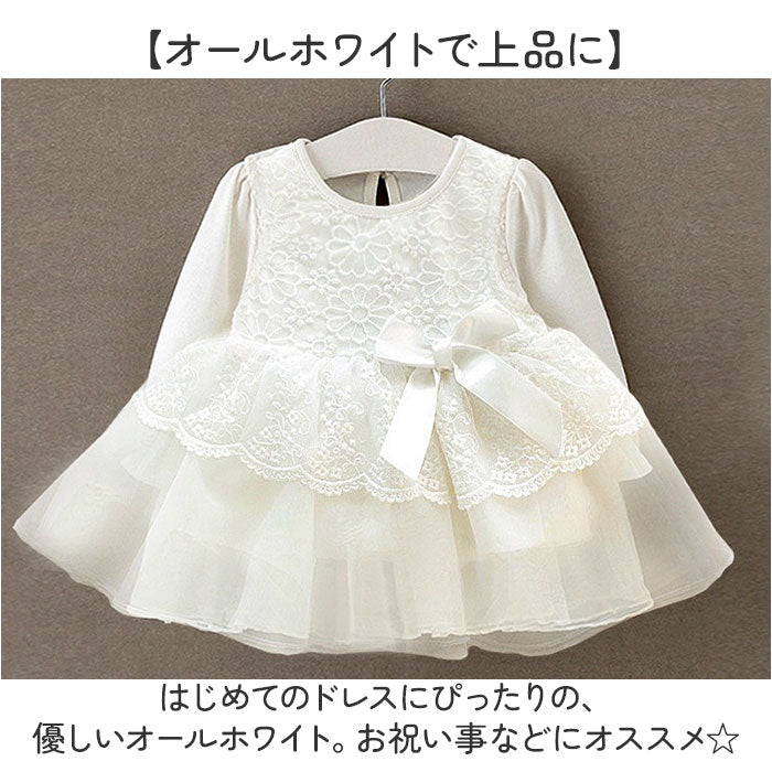 ・はじめてのドレスにぴったりの、優しいオールホワイト。お祝い事などにオススメ☆