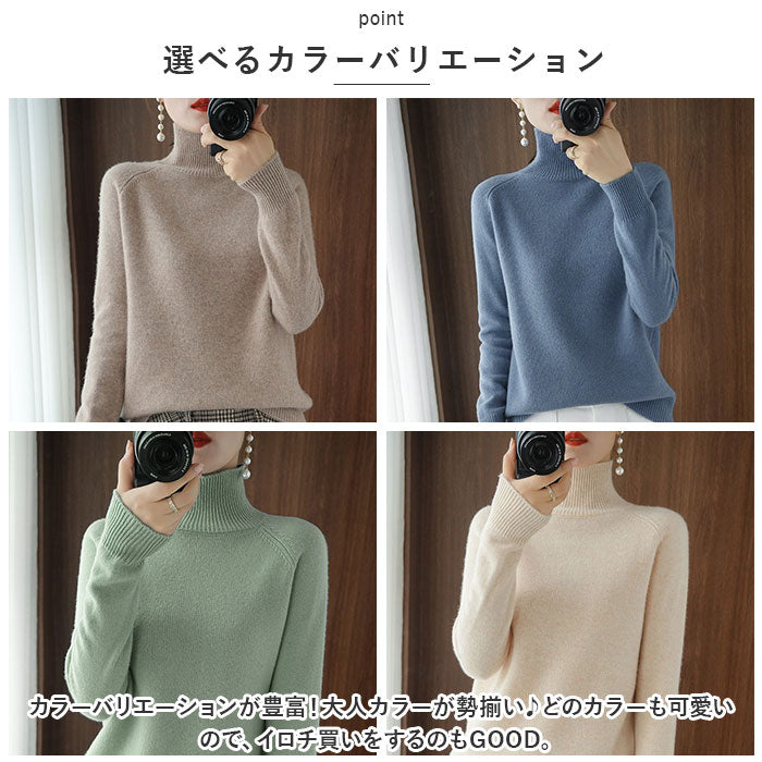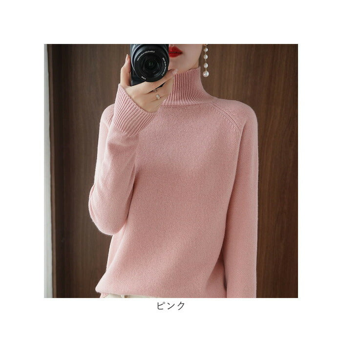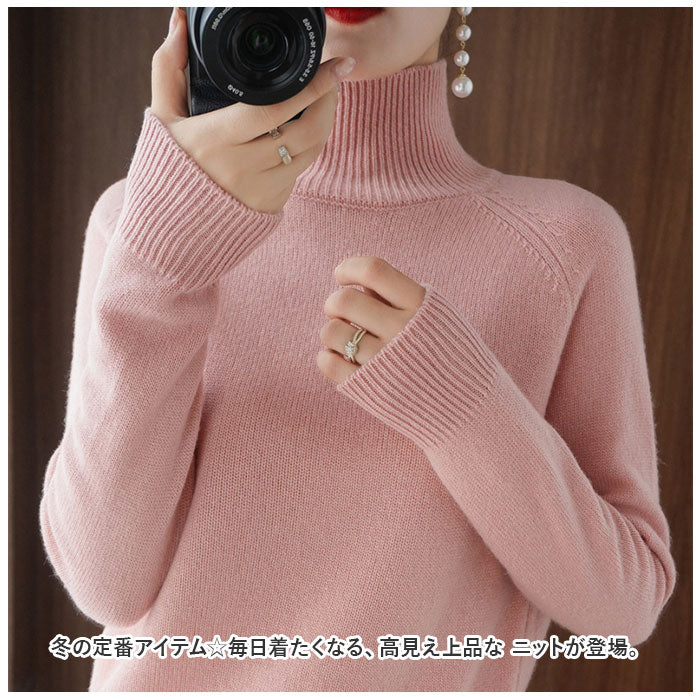 セーター ニット 秋 冬 レディース 通販 ニットセーター タートルネック カットソー ラグラン袖 プルオーバー 長袖 手洗い やや厚手 洗える しっとり ストレッチ ソフト 肌触りが良い