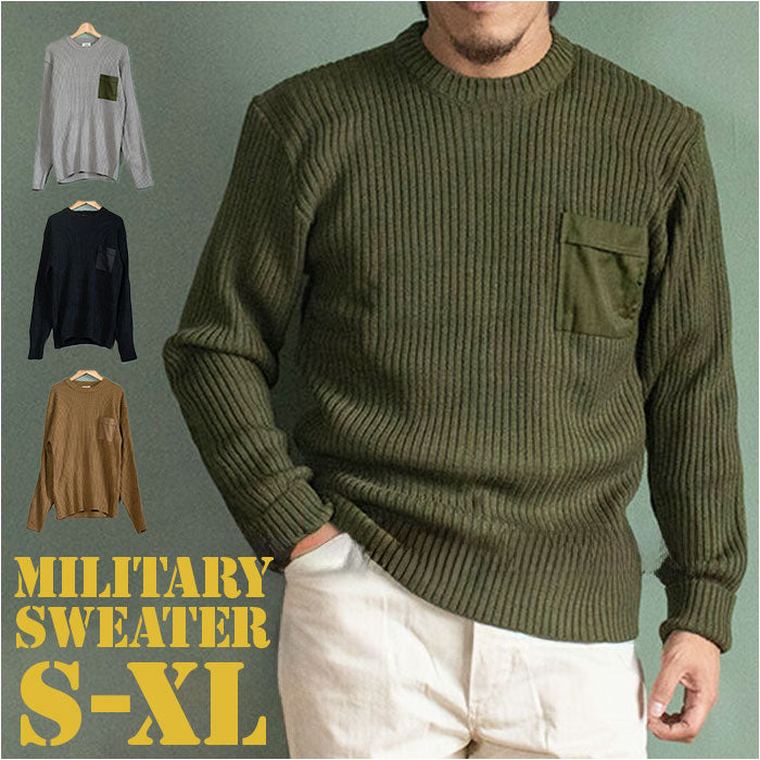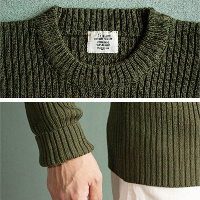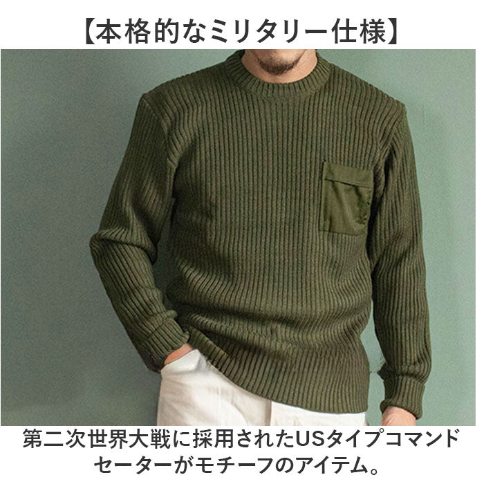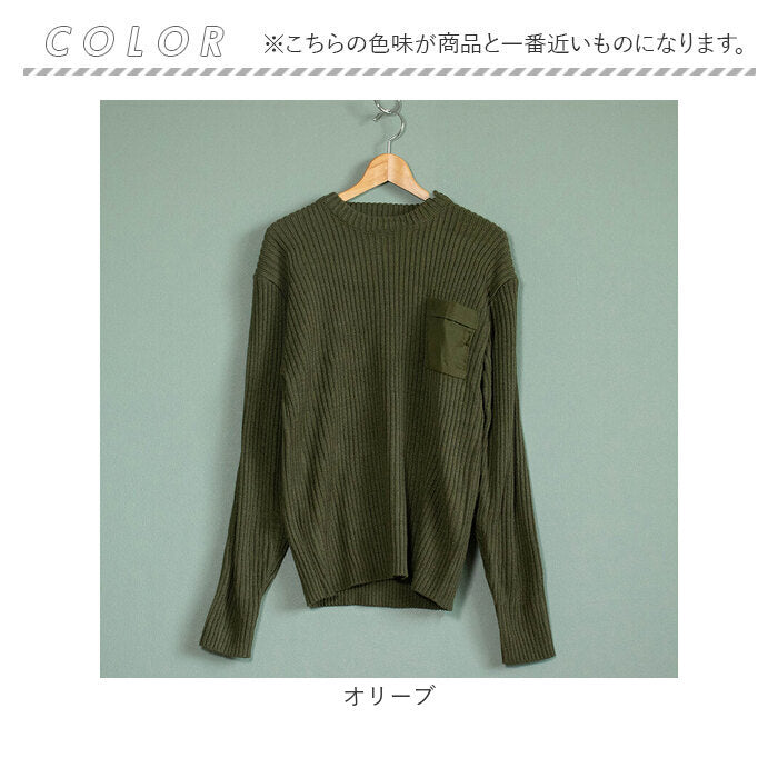 セーター メンズ 通販 コマンドセーター ミリタリーセーター 畦編みニットセーター 新品 JW045YN アクリル ポケット付 あぜ編みニット ニット クルーネック USタイプ アメリカ軍 レプリカ