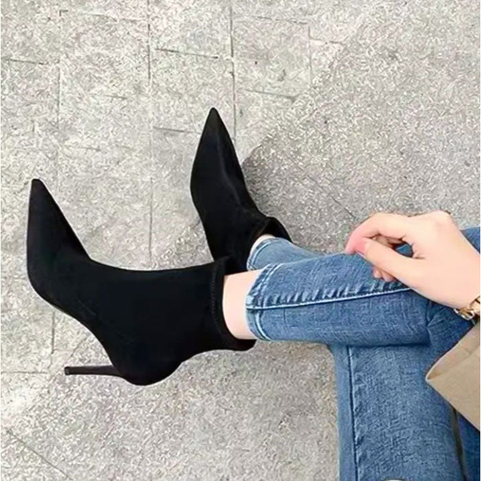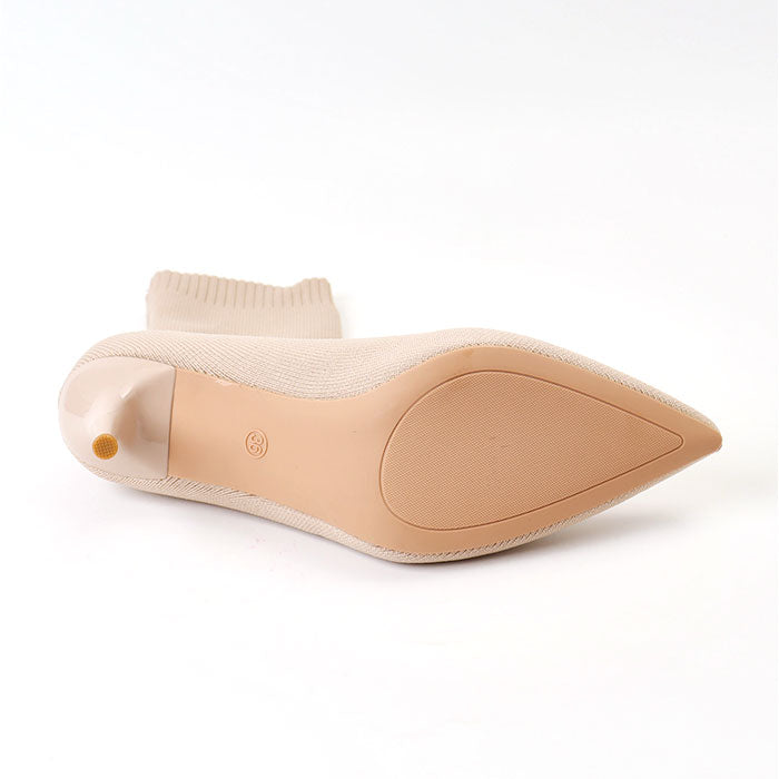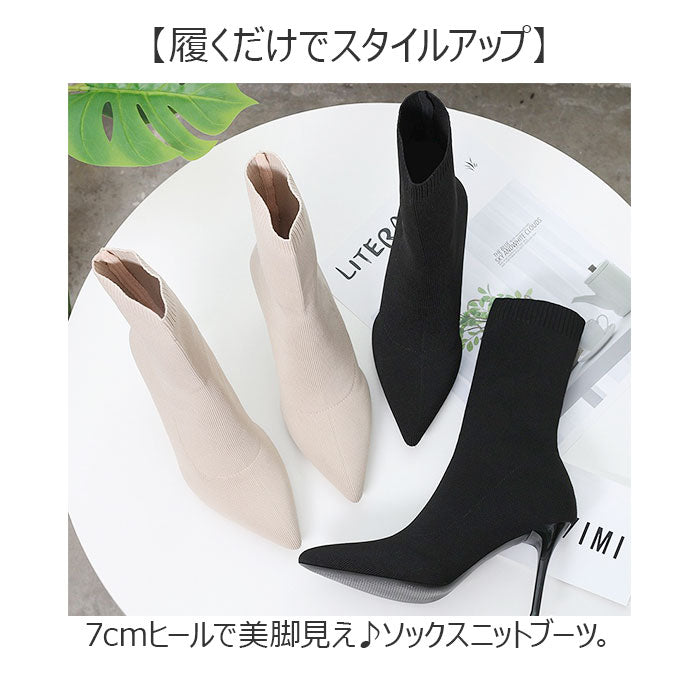 7cmヒールで美脚見え♪ソックスニットブーツ。