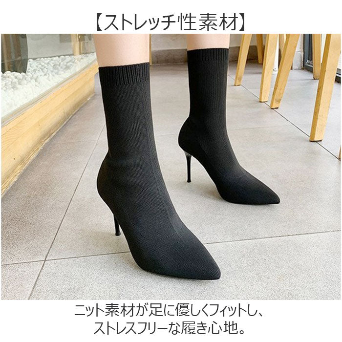 ソックスブーツ レディース 通販 ブーツ ニットブーツ ニット ソックスニットブーツ ショートブーツ ハイヒール ショート丈 ストレッチ 秋 冬 おしゃれ お洒落 ピンヒールソックスブーツ