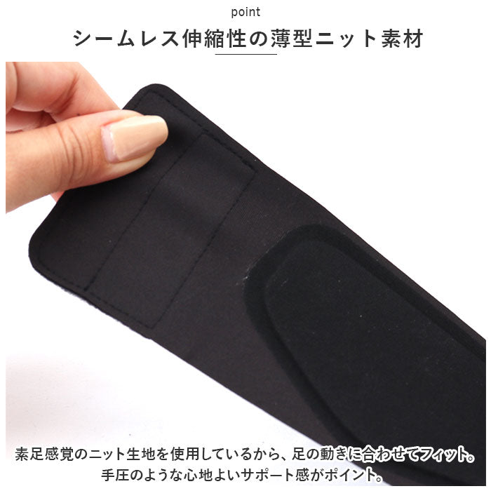 ・素足感覚のニット生地を使用しているから、足の動きに合わせてフィット。手圧のような心地よいサポート感がポイント。