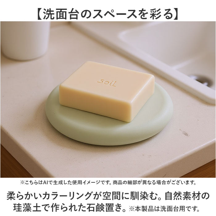 ・柔らかいカラーリングが空間に馴染む。自然素材の珪藻土で作られた石鹸置き。※本製品は洗面台用です。
