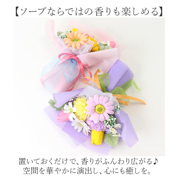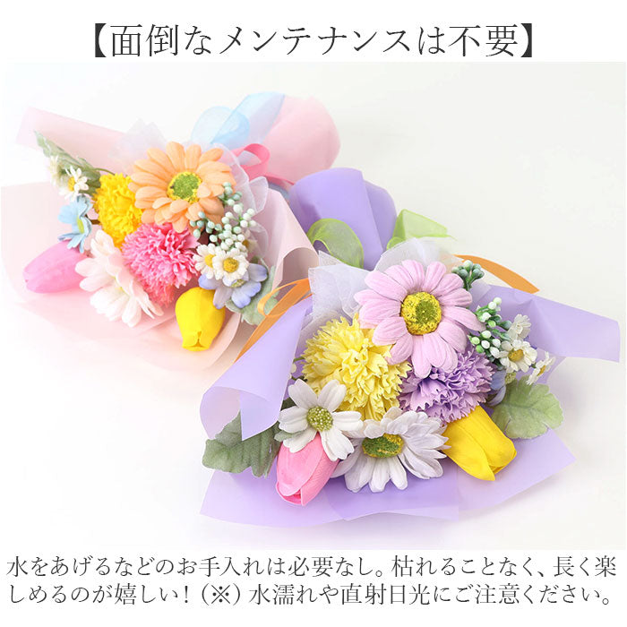 ・造花と石鹸素材から作られた、観賞用フラワーアレンジメント。生花さながらの美しい色合い♪