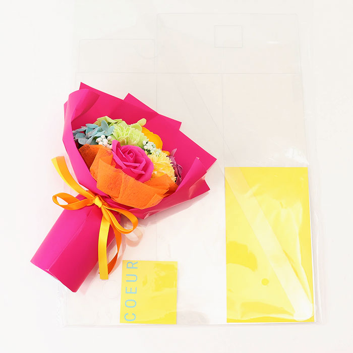 ソープフラワー ブーケ ポット 手提げバッグ付き 通販 ソープフラワーブーケ 花束 花 フラワー フラワーギフト ソープ お花 ギフト 贈り物 パッケージ クリア かわいい 可愛い