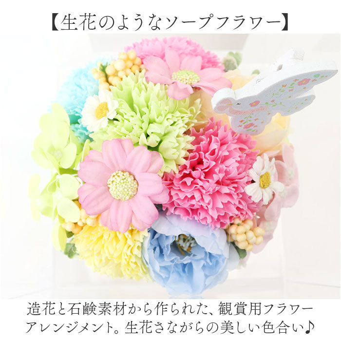 ・造花と石鹸素材から作られた、観賞用フラワーアレンジメント。生花さながらの美しい色合い♪