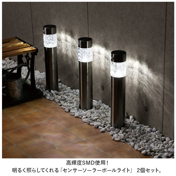 ・高輝度SMD使用!明るく照らしてくれる「センサーソーラーポールライト」 2個セット。