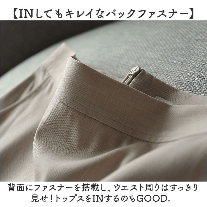 ・背面にファスナーを搭載し、ウエスト周りはすっきり見せ!トップスをINするのもGOOD。