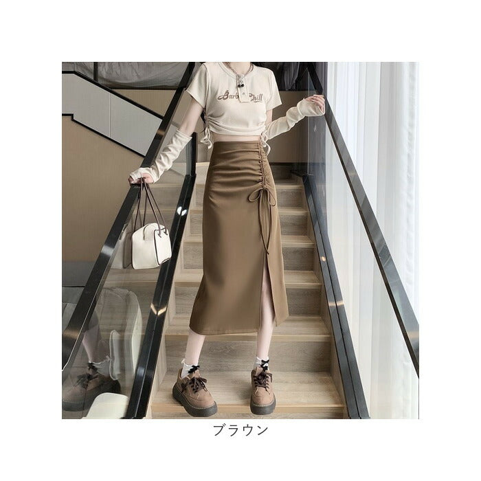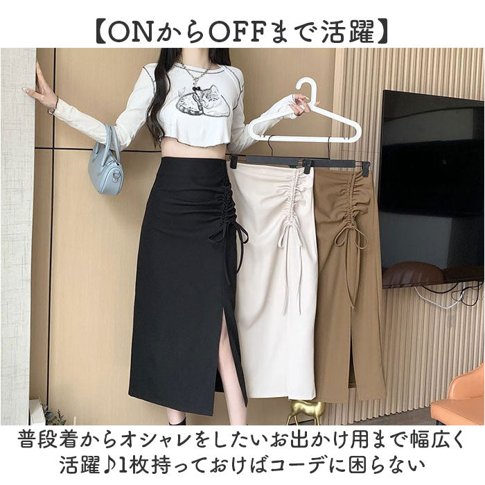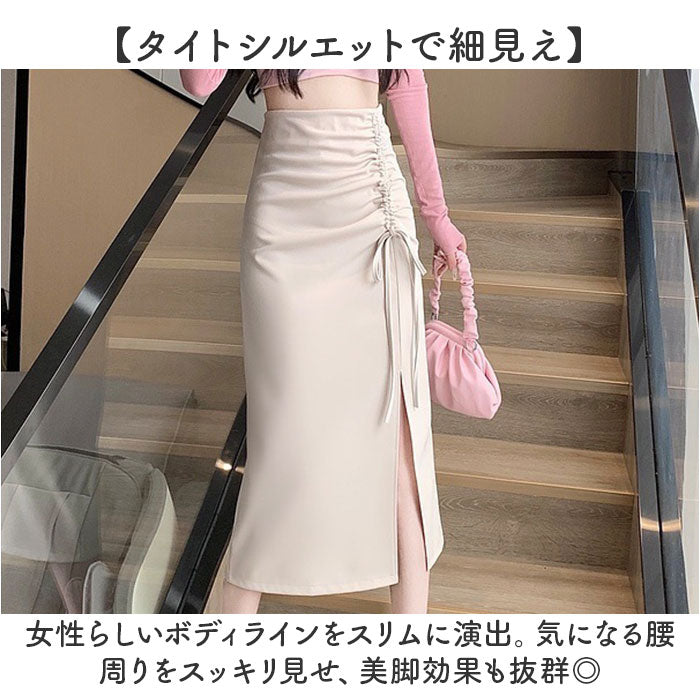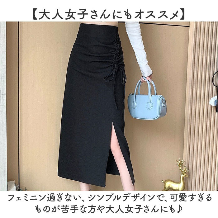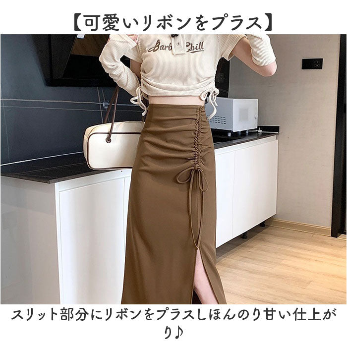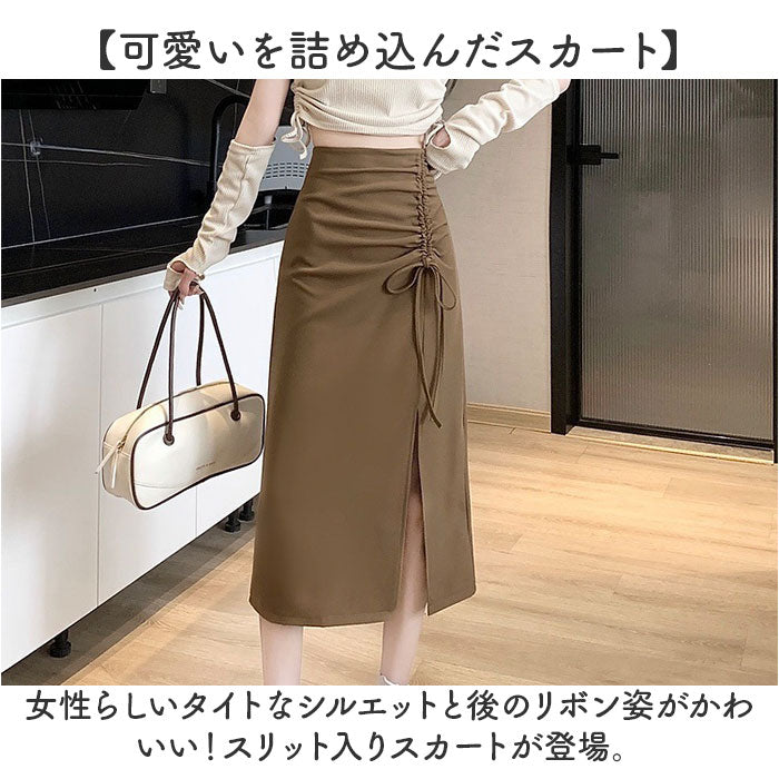 タイトスカート レディース スリツト 通販 タイト スカート レディーススカート ミモレ丈 ミモレ 深スリット スリット入り リボン セクシー きれいめ かわいい 可愛い カジュアル