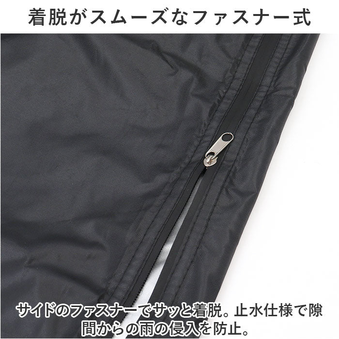 ・サイドのファスナーでサッと着脱。止水仕様で隙間からの雨の侵入を防止。