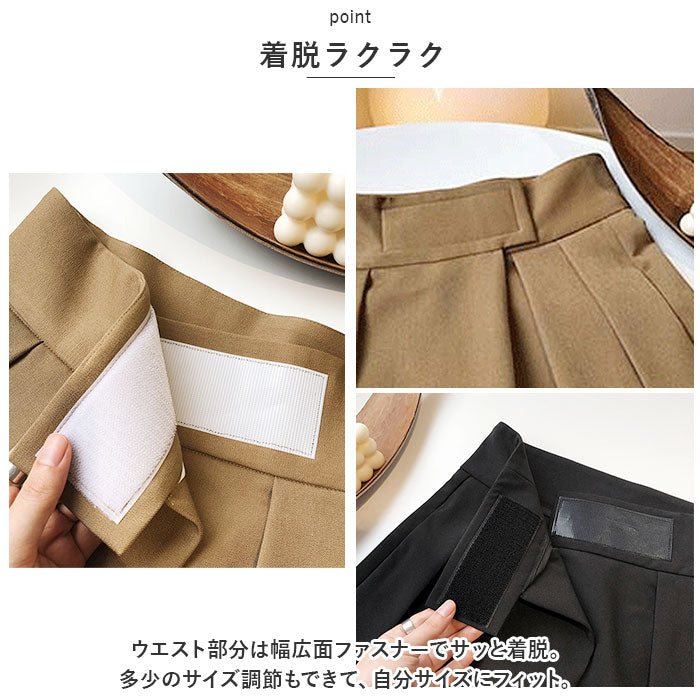 ・大きめにタックを入れることで、ウエストや腰回りにゆとりをプラス。全体的にワイドデザインなので、体のラインを拾いにくく気になる部分もカバー◎