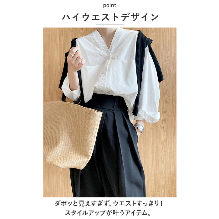タックワイドパンツ 通販 ワイドパンツ タックパンツ イージーパンツ ボトムス ズボン タック スラックス ストレート ワイド 通勤 通学 上品 きれいめ ハイウエスト スーツ生地