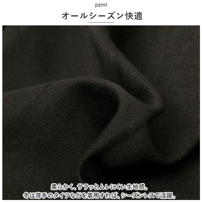 ・柔らかく、サラッとムレにくい生地感。冬は薄手のタイツなどを着用すれば、シーズンレスで活躍。