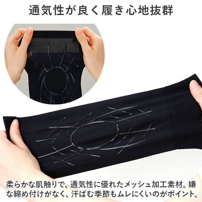 ・柔らかな肌触りで、通気性に優れたメッシュ加工素材。嫌な締め付けがなく、汗ばむ季節もムレにくいのがポイント。