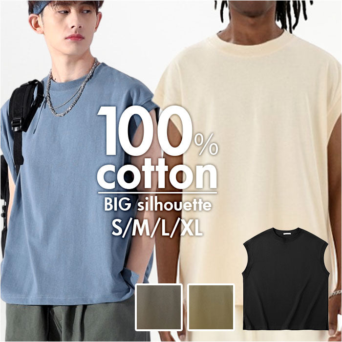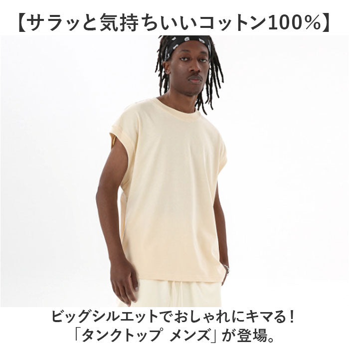 タンクトップ メンズ 無地 通販 綿 コットン ノースリーブ 袖無し トレーニング 筋トレ おしゃれ 夏 オシャレ ゆったり ビッグシルエット メンズファッション 袖なし トップス ジム