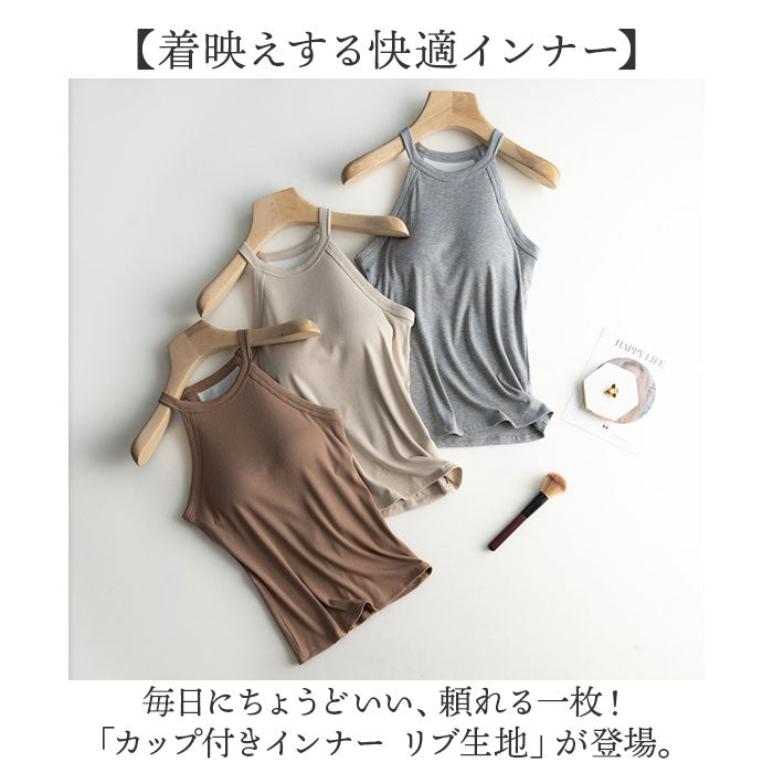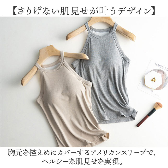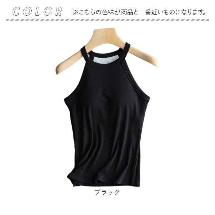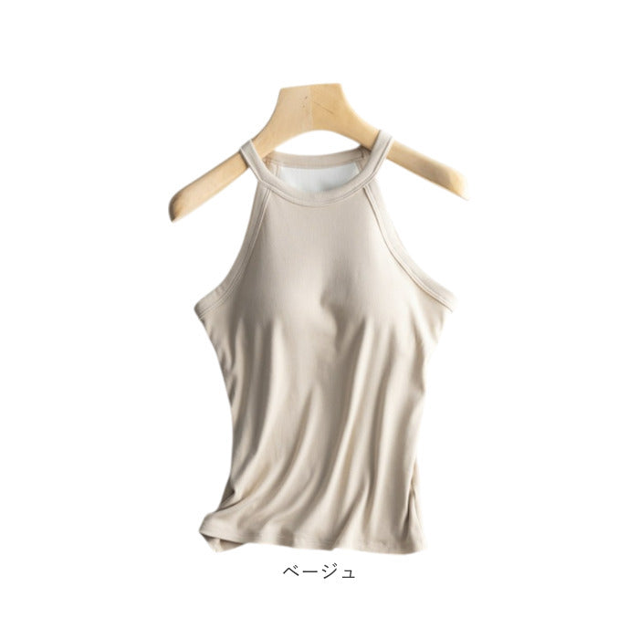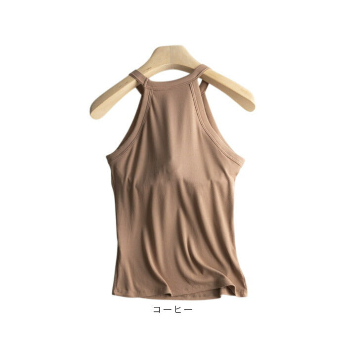 タンクトップ レディース 通販 胸パット付きタンクトップ ホルターネック キャミソール カップ付き ノンワイヤー トップス 涼しい 快適 おしゃれ かわいい ルームウェア 部屋着 シンプル
