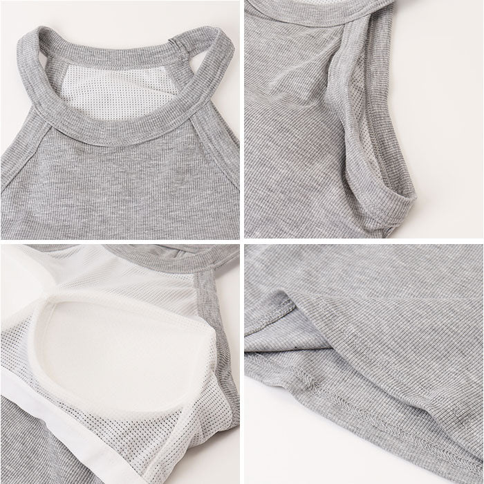 ・胸元と背中の内側にはメッシュ素材を使用。ムレにくく爽やかに過ごせる夏の味方♪
