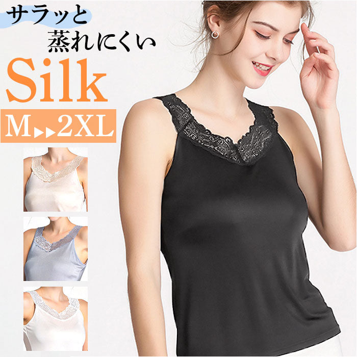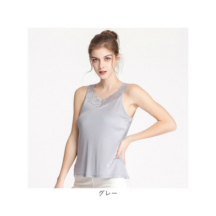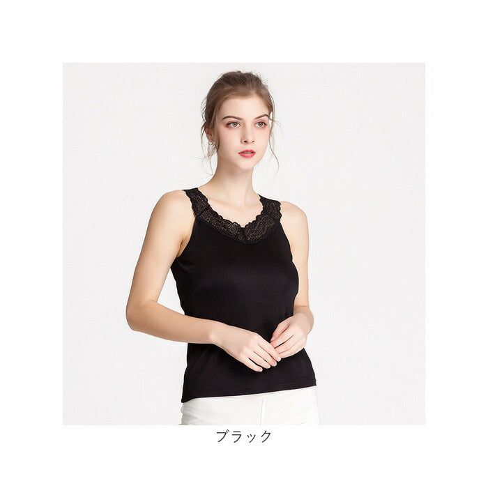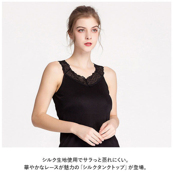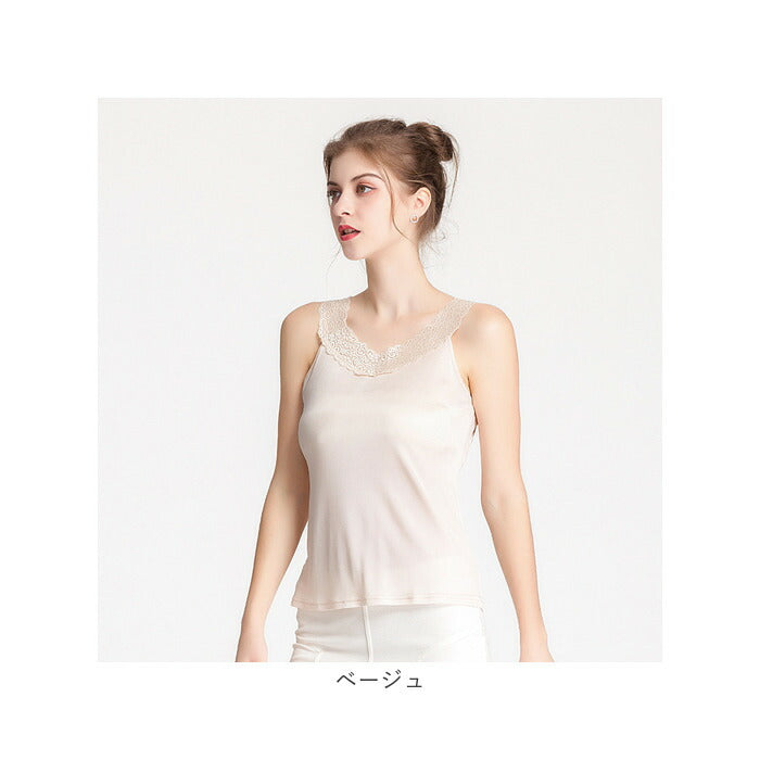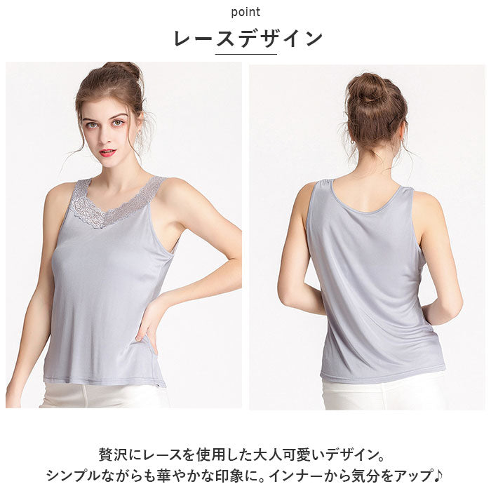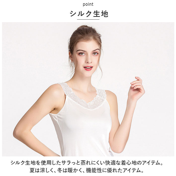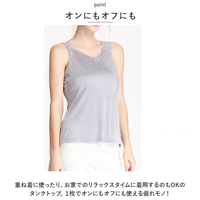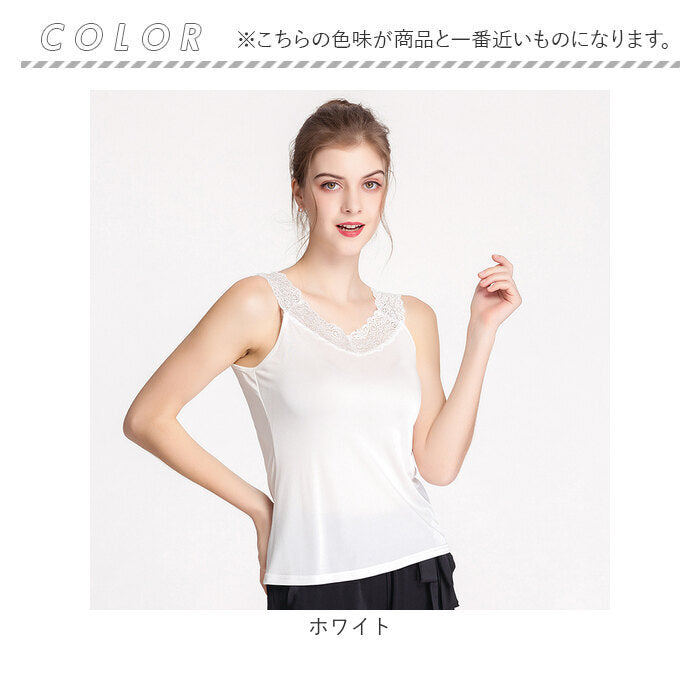 タンクトップ レース 通販 インナー 下着 肌着 トップス 一枚着 シルク 重ね着 見せる 吸湿 保湿 放湿 シンプル 無地 通勤 通学 フォーマル カジュアル ノースリーブ タンク レイヤード