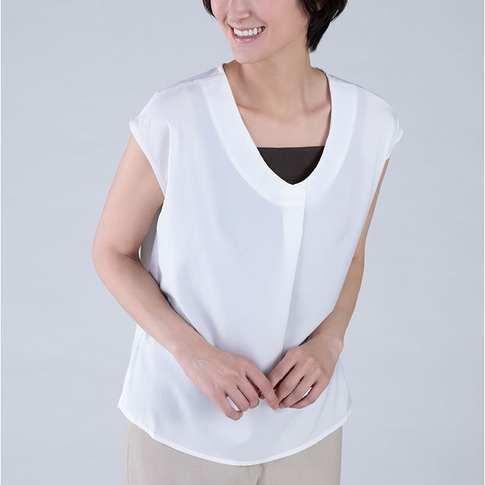 ・胸元と脇に優しくフィットして袖口からのチラ見えを防いでくれるタンクトップ◎