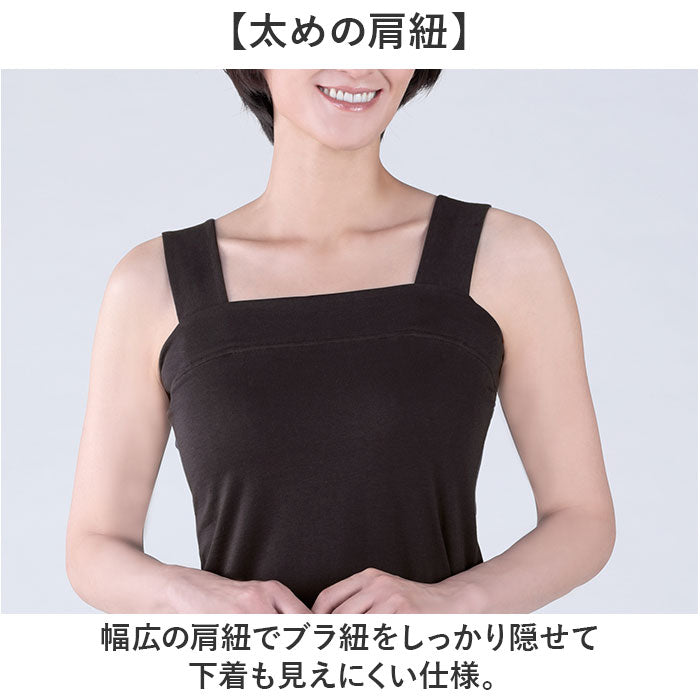 ・幅広の肩紐でブラ紐をしっかり隠せて下着も見えにくい仕様。