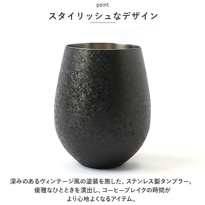 ・深みのあるヴィンテージ風の塗装を施した、ステンレス製タンブラー。優雅なひとときを演出し、コーヒーブレイクの時間がより心地よくなるアイテム。