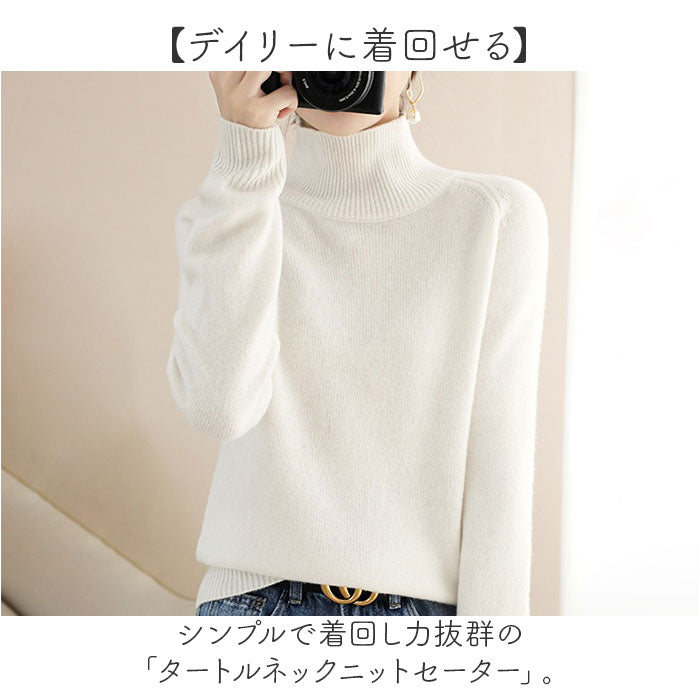 ・シンプルで着回し力抜群の「タートルネックニットセーター」。