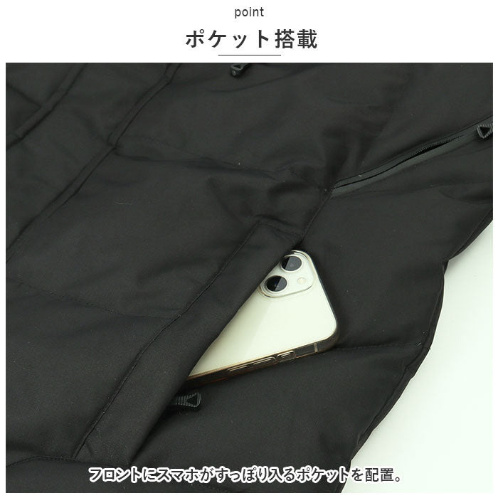 ・フード付きだから頭からひざ下までしっかり防寒できるのも嬉しいポイント。