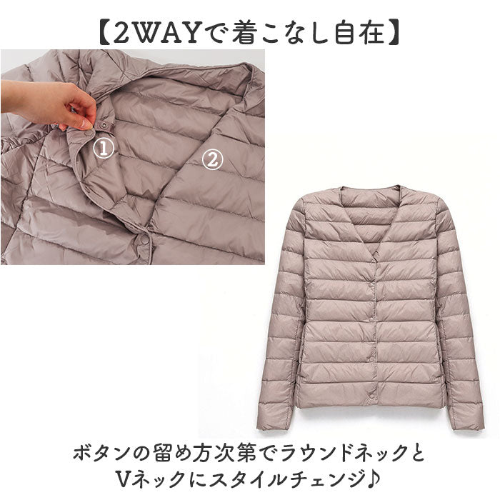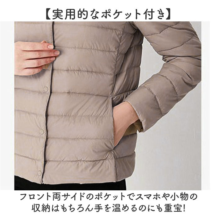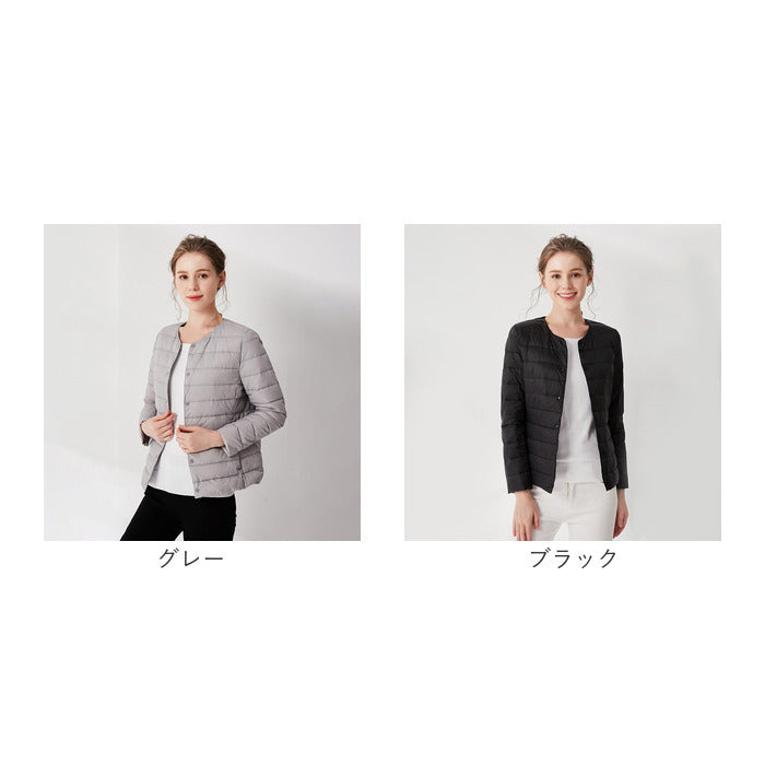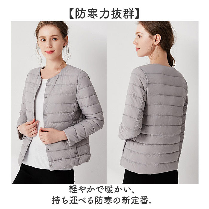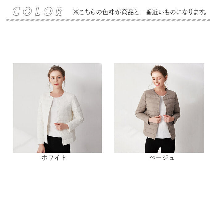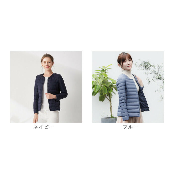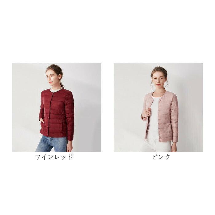 ダウンジャケット レディース ショート フードなし 通販 インナーダウン ライトダウン 中綿 コート 暖かい 防寒 軽量 ジャケット 無地 ノーカラー 長袖 ダウン ショート丈 秋冬 v首