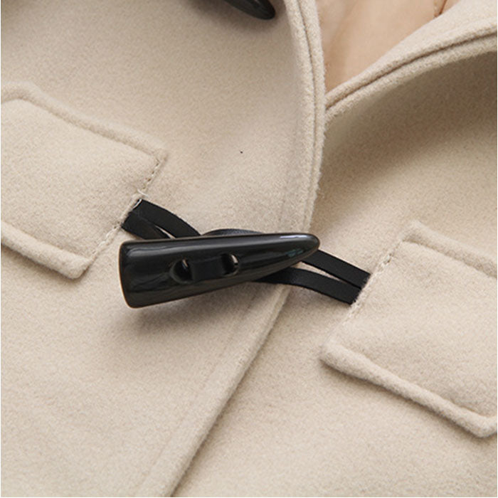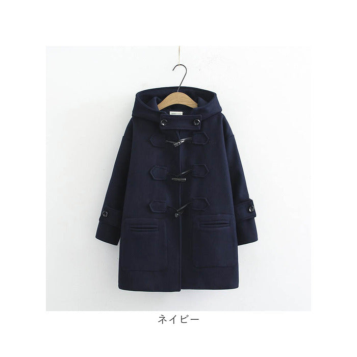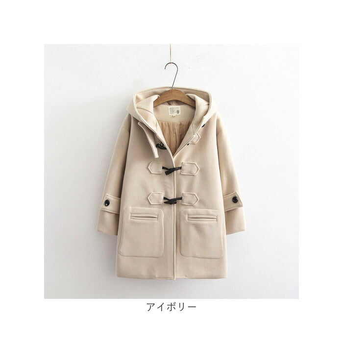 ・装飾が少ないシンプルな作りのダッフルコート。秋冬の通学や通勤にもピッタリ。しっかりとした厚手の生地で大人っぽい仕上がりなのもGOOD。