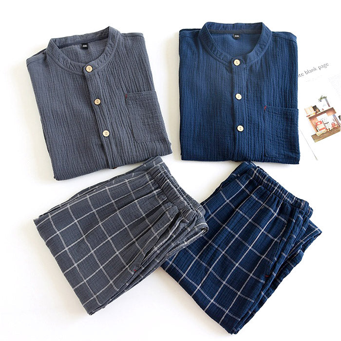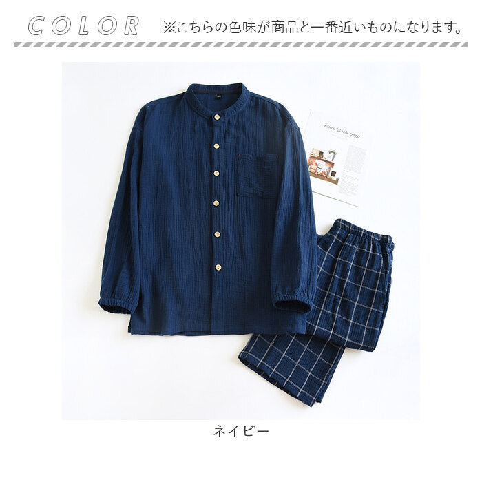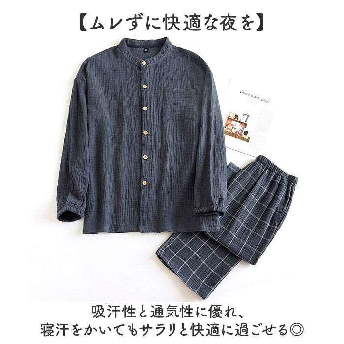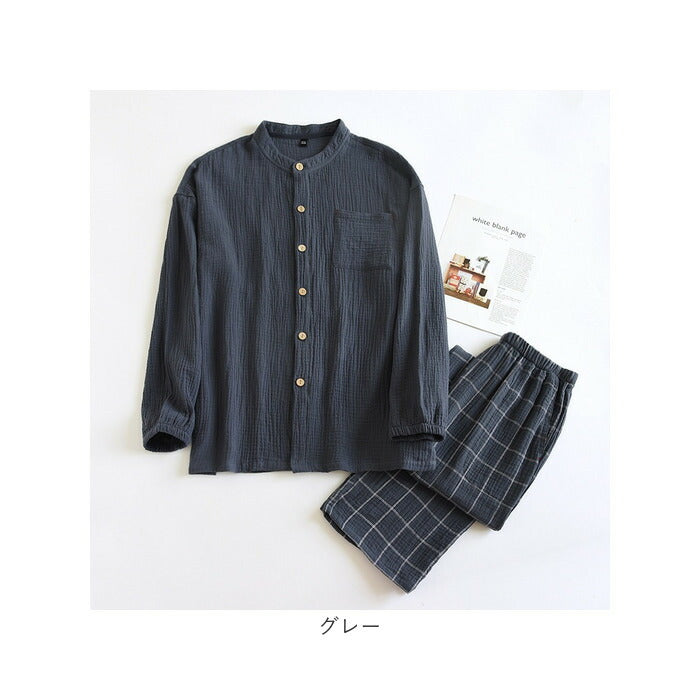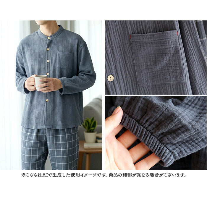 ダブルガーゼ パジャマ メンズ 通販 寝巻き 寝間着 寝巻 部屋着 長袖パジャマ ガーゼパジャマ ルームウェア ルームウエア ダブルガーゼパジャマ 前開きパジャマ 上下セット セットアップ