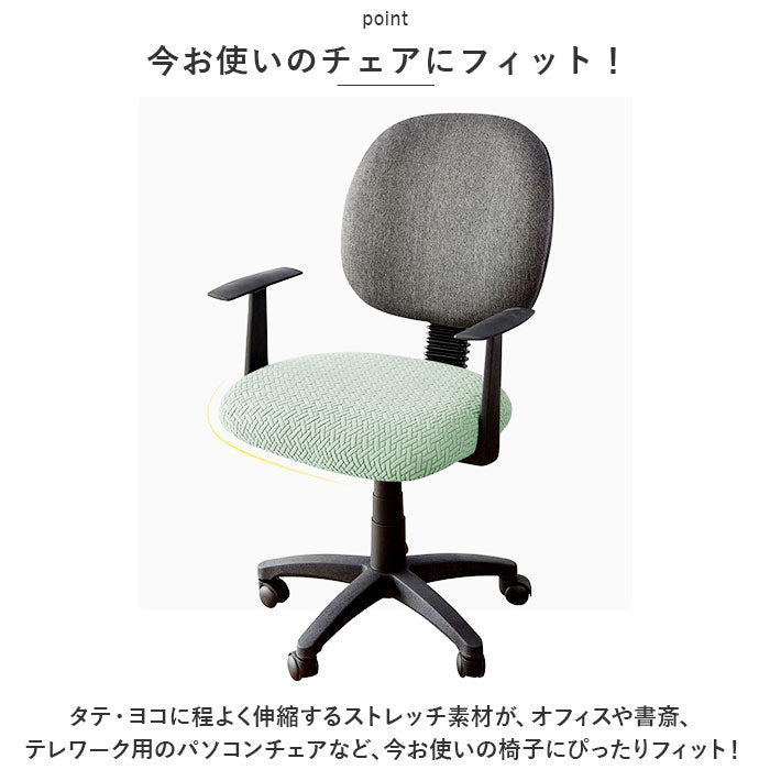 ・タテ・ヨコに程よく伸縮するストレッチ素材が、オフィスや書斎、テレワーク用のパソコンチェアなど、今お使いの椅子にぴったりフィット!