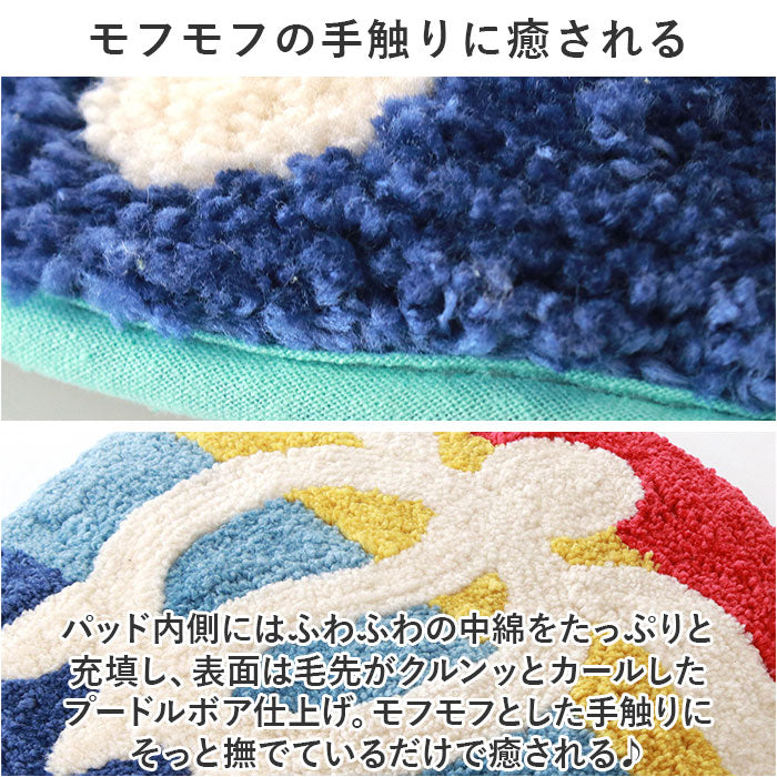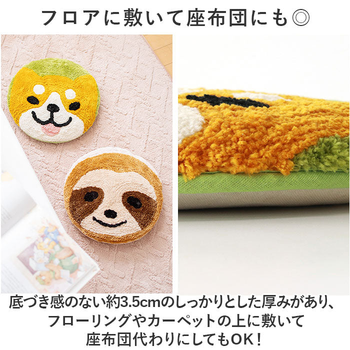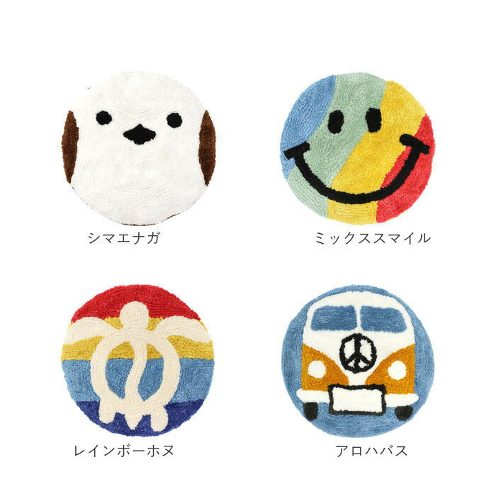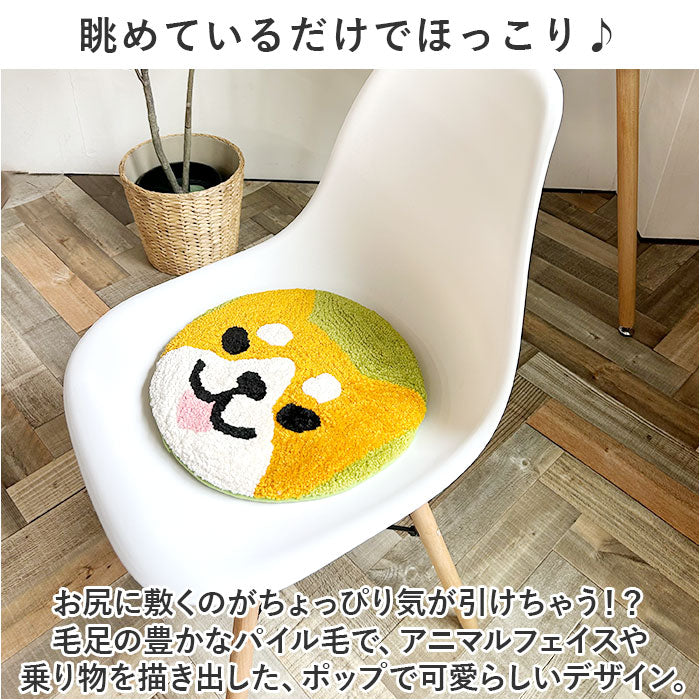・お尻に敷くのがちょっぴり気が引けちゃう!?毛足の豊かなパイル毛で、アニマルフェイスや乗り物を描き出した、ポップで可愛らしいデザイン。