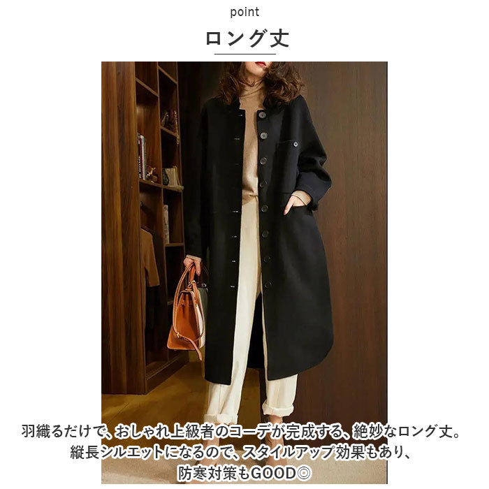 チェスターコート レディース 通販 ロング コート ラシャコート トレンチコート アウター ジャケット シンプル 無地 折り襟 ステンカラー 通勤 通学 入学式 卒業式 フォーマル 秋 冬