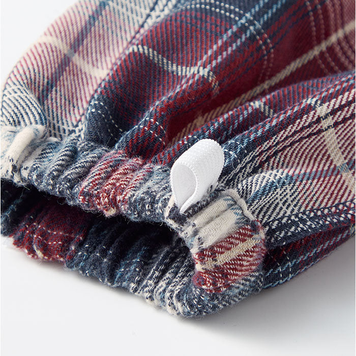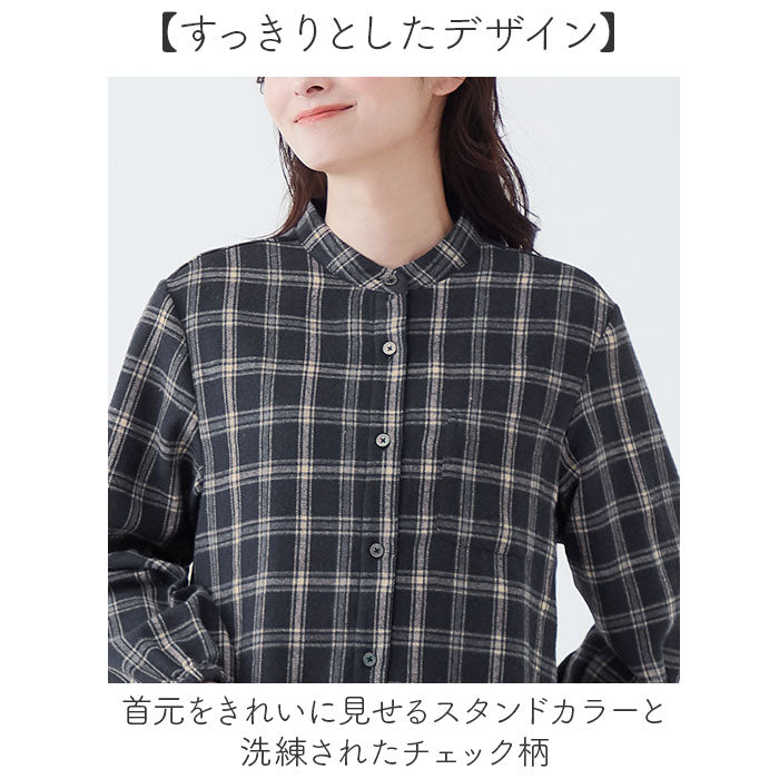 ・首元をきれいに見せるスタンドカラーと洗練されたチェック柄