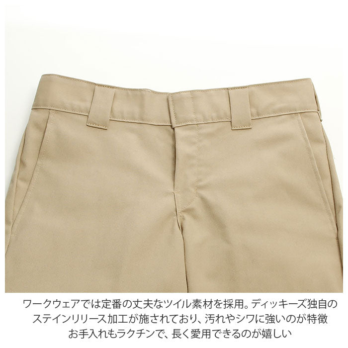 ・コットン35%・ポリエステル65%。ワークウェアでは定番の丈夫なツイル素材を採用。ディッキーズ独自のステインリリース加工が施されており、汚れやシワに強いのが特徴。アイロンやお洗濯などお手入れもラクチンで、長く愛用できるのが嬉しい。