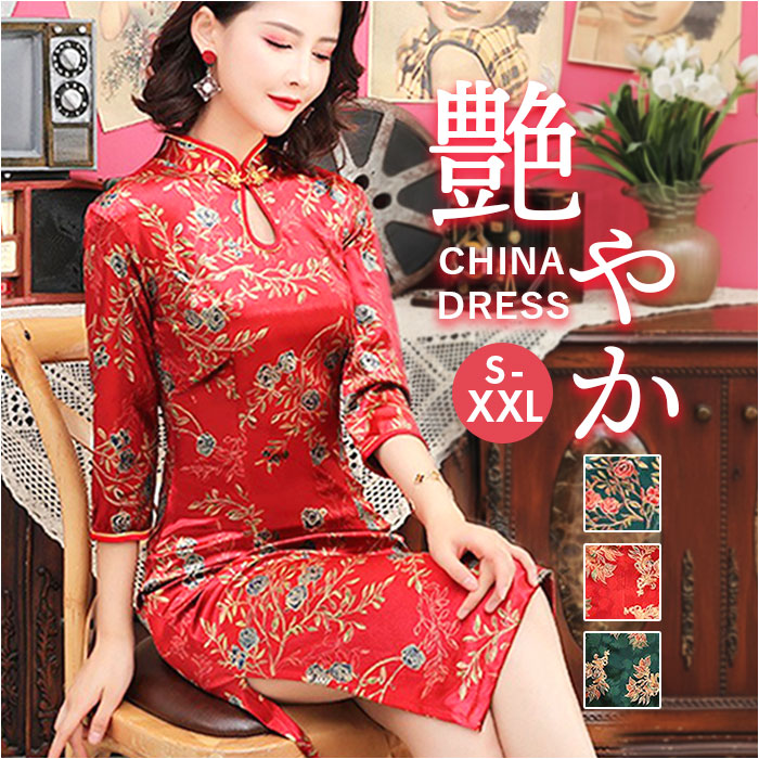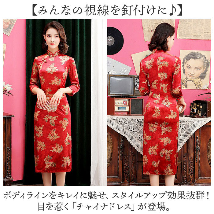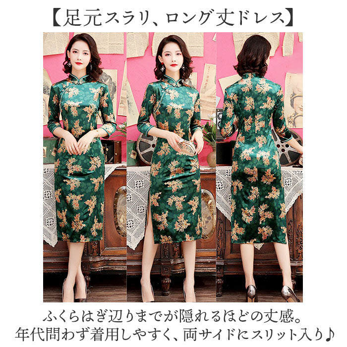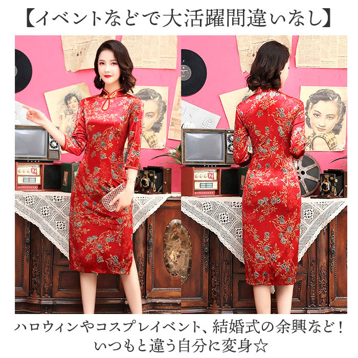 チャイナドレス ミモレ丈 レディース 通販 コスプレ チャイナ服 セクシー ドレス 衣装 ひざ下 膝下 ワンピース チャイナ コスチューム 大人 膝下丈 ひざ下丈 パーティー 可愛い かわいい