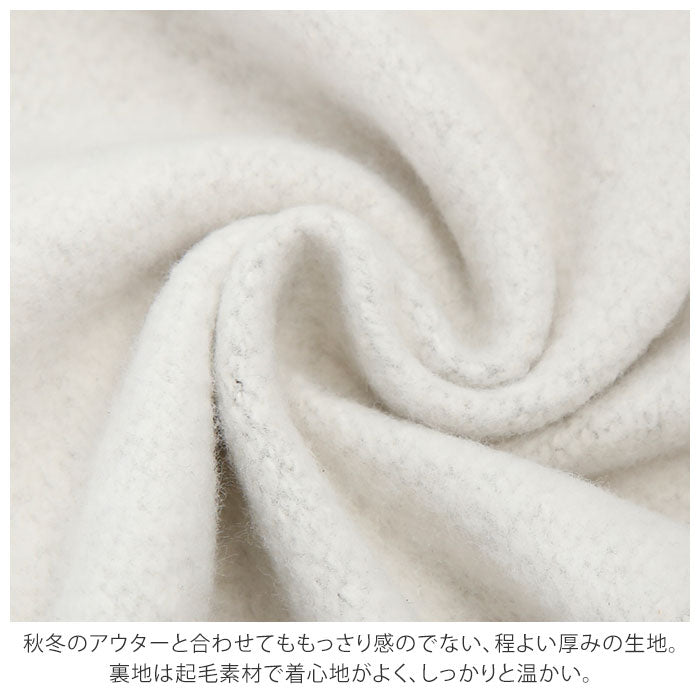 ・秋冬のアウターと合わせてももっさり感のでない、程よい厚みの生地。裏地は起毛素材で着心地がよく、しっかりと温かい。