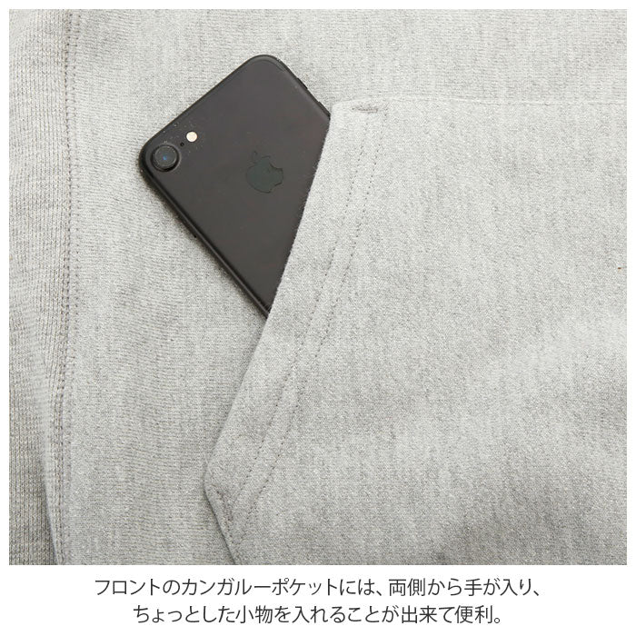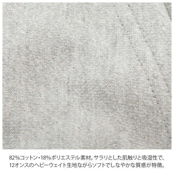 ・82%コットン・18%ポリエステル素材(※)。サラリとした肌触りと吸湿性で、12オンスのヘビーウェイト生地ながらソフトでしなやかな質感が特徴。(※CharcoalHeather・OxfordGreyのみ素材の組成が異なります。)