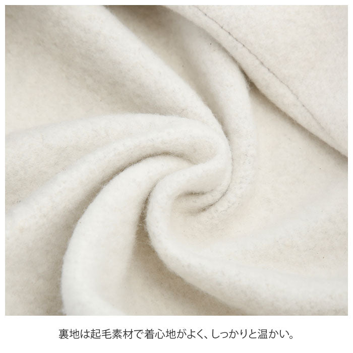 ・秋冬のアウターと合わせてももっさり感のでない、程よい厚みの生地。裏地は起毛素材で着心地がよく、しっかりと温かい。