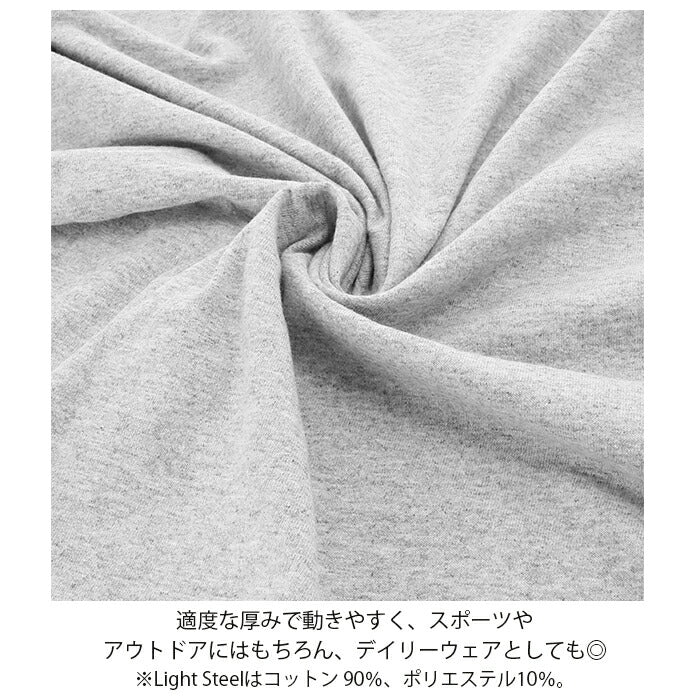 ・綿100%で、厚みはTシャツでは少し厚めの5.2オンス。適度な厚みで動きやすく、スポーツやアウトドアにはもちろん、デイリーウェアとしても◎※Light Steelはコットン 90%、ポリエステル10%。