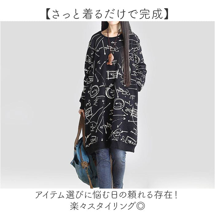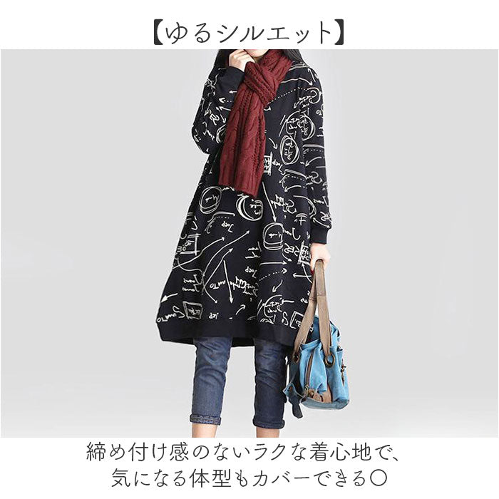 チュニックワンピース 長袖 通販 チュニック チュニックワンピ ワンピ 膝丈ワンピース ワンピース レディース プルオーバー ゆるワンピース ミディ丈 ひざ丈 膝丈 大きいサイズ
