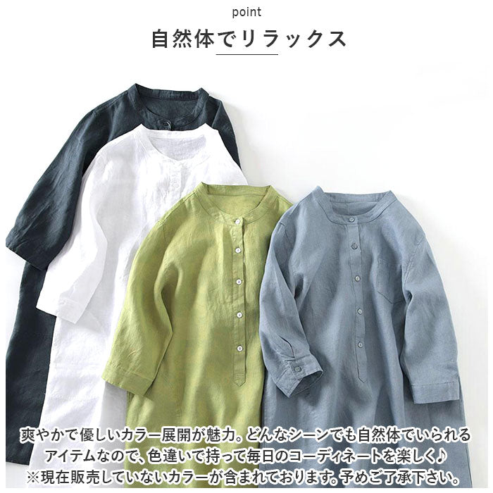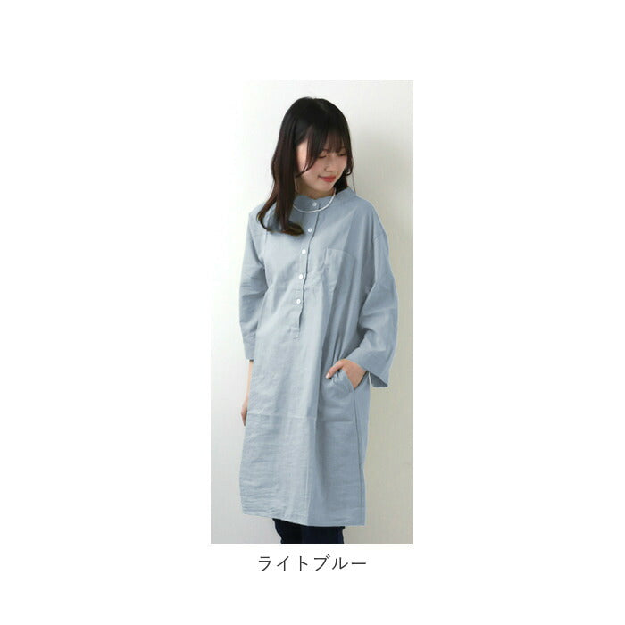 チュニック ブラウス 通販 ロングシャツ 7分袖 チュニックワンピース シャツワンピース トップス ロングワンピ シャツ ワンピース シャツワンピ シンプル 無地 スタンドカラー ボタン