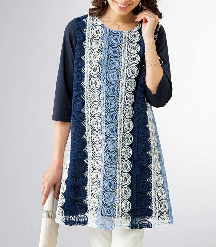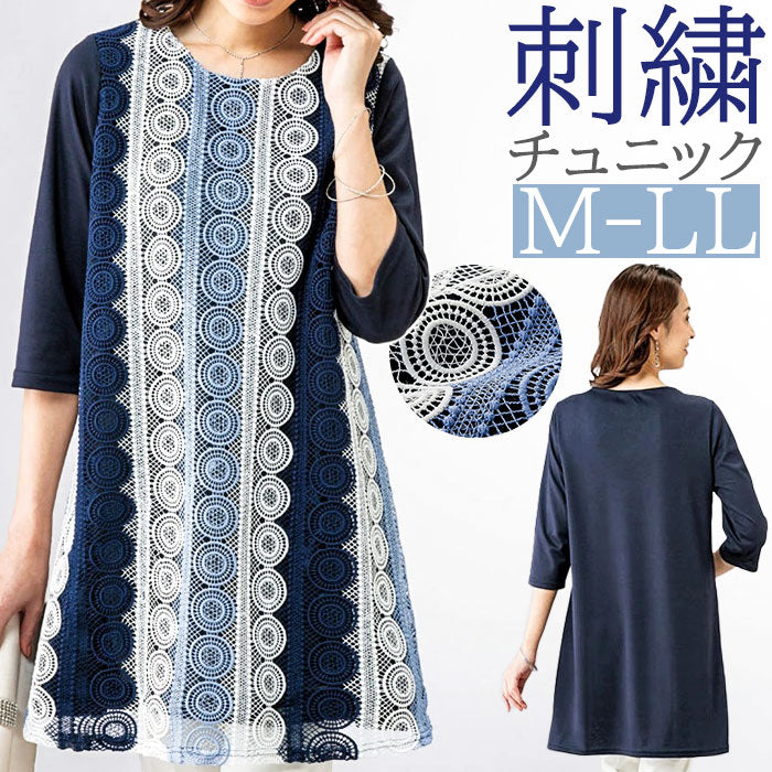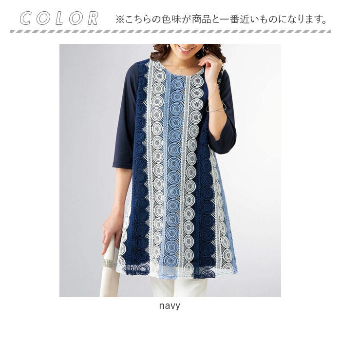 チュニック レディース 通販 レース刺しゅう エレガントチュニック チュニックワンピース プルオーバー 7分袖 七分袖 5分袖 五分袖 春 夏 上品 きれいめ おしゃれ かわいい オシャレ