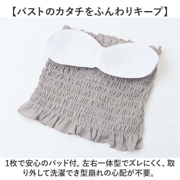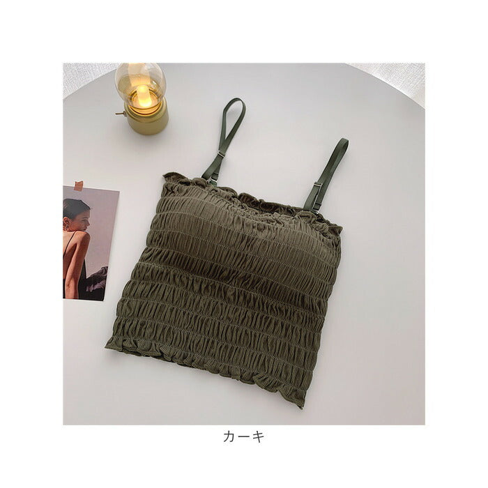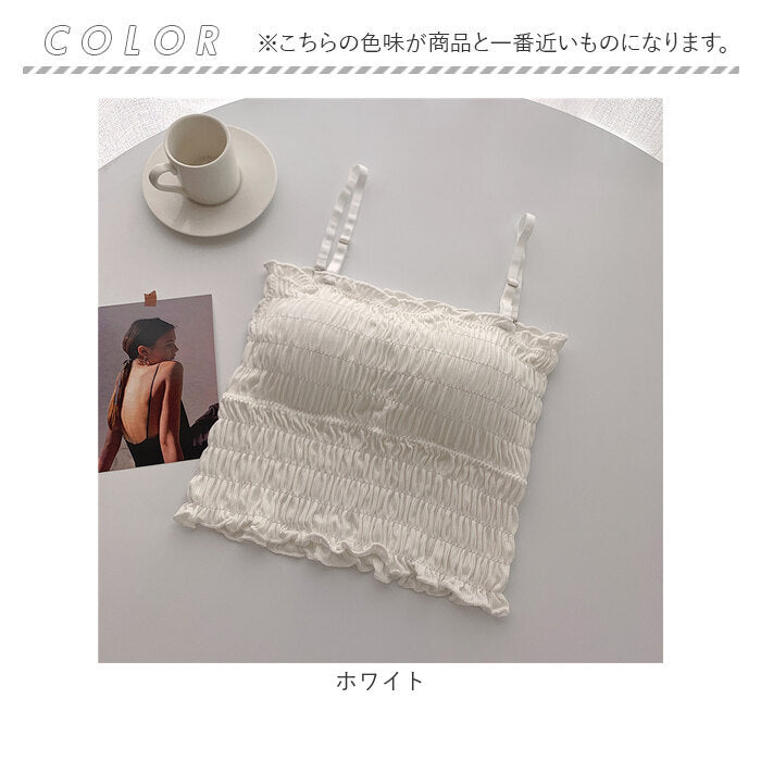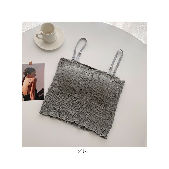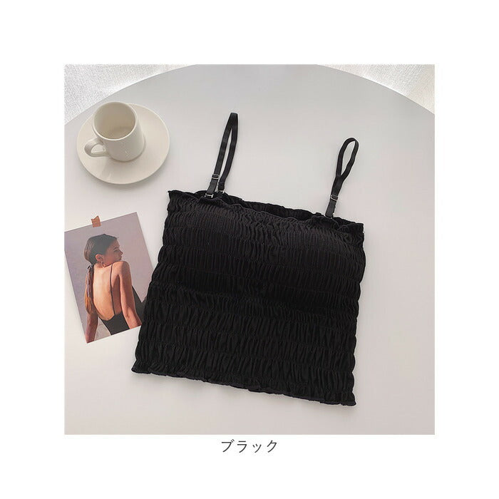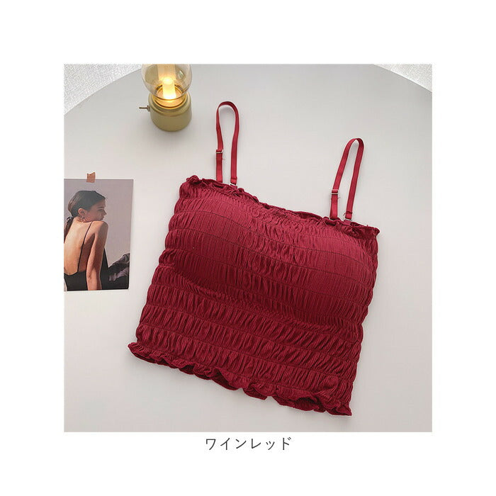 チューブトップ カップ付 通販 ベアトップ キャミソール ブラトップ キャミ ショート丈 シャーリング ストラップ付 フリル カジュアル シンプル 無地 ダンス お出かけ 通勤 通学 おしゃれ