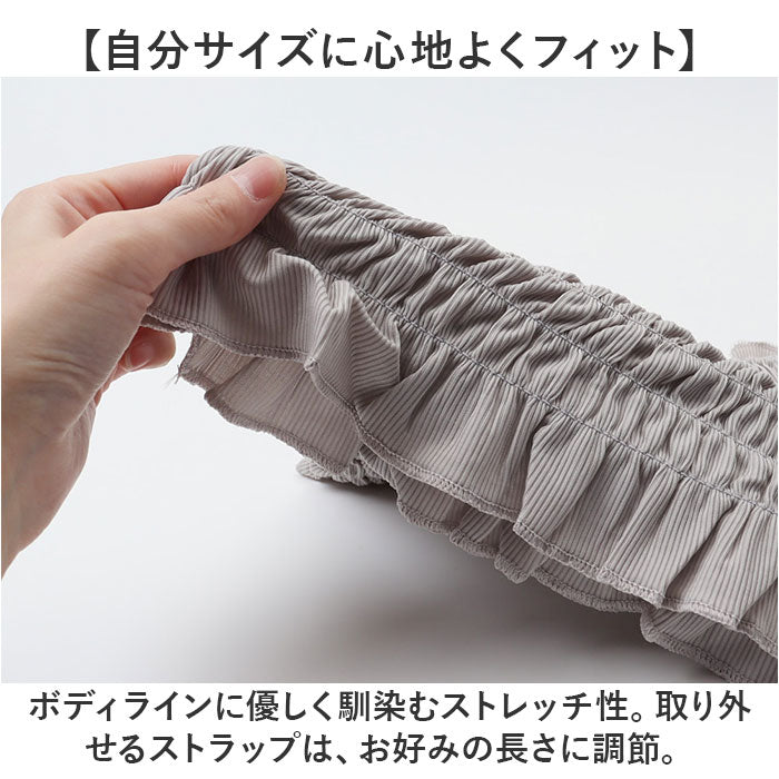 ・ボディラインに優しく馴染むストレッチ性。取り外せるストラップは、お好みの長さに調節。