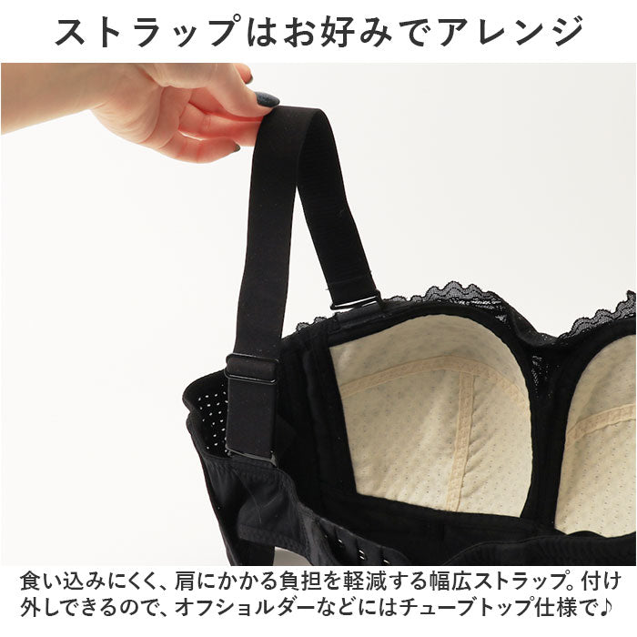チューブトップ ブラ 通販 チューブブラ ストラップレス ストラップなし ブラトップ 胸を抑える 胸を小さく見せる 胸パッド 下着 カップ付き ノンワイヤー ワイヤーなし レース
